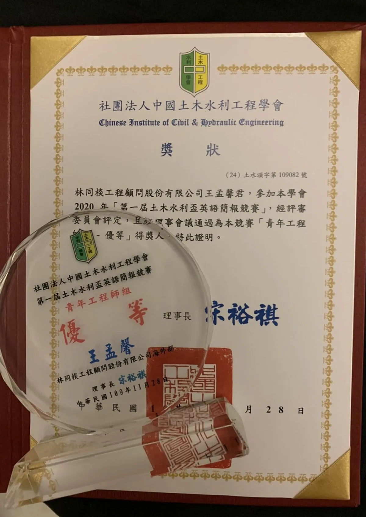 109年度第一屆土木水利盃英語簡報競賽青年工程師組優等[王孟馨]