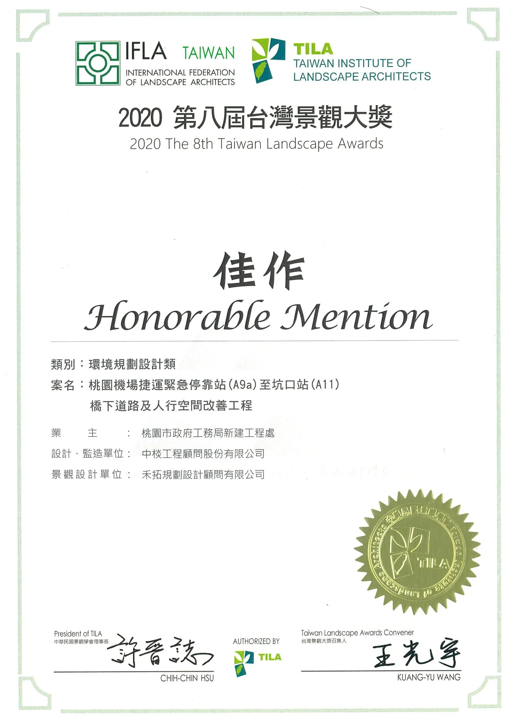 109年度2020第八屆台灣景觀大獎-環境規劃設計類