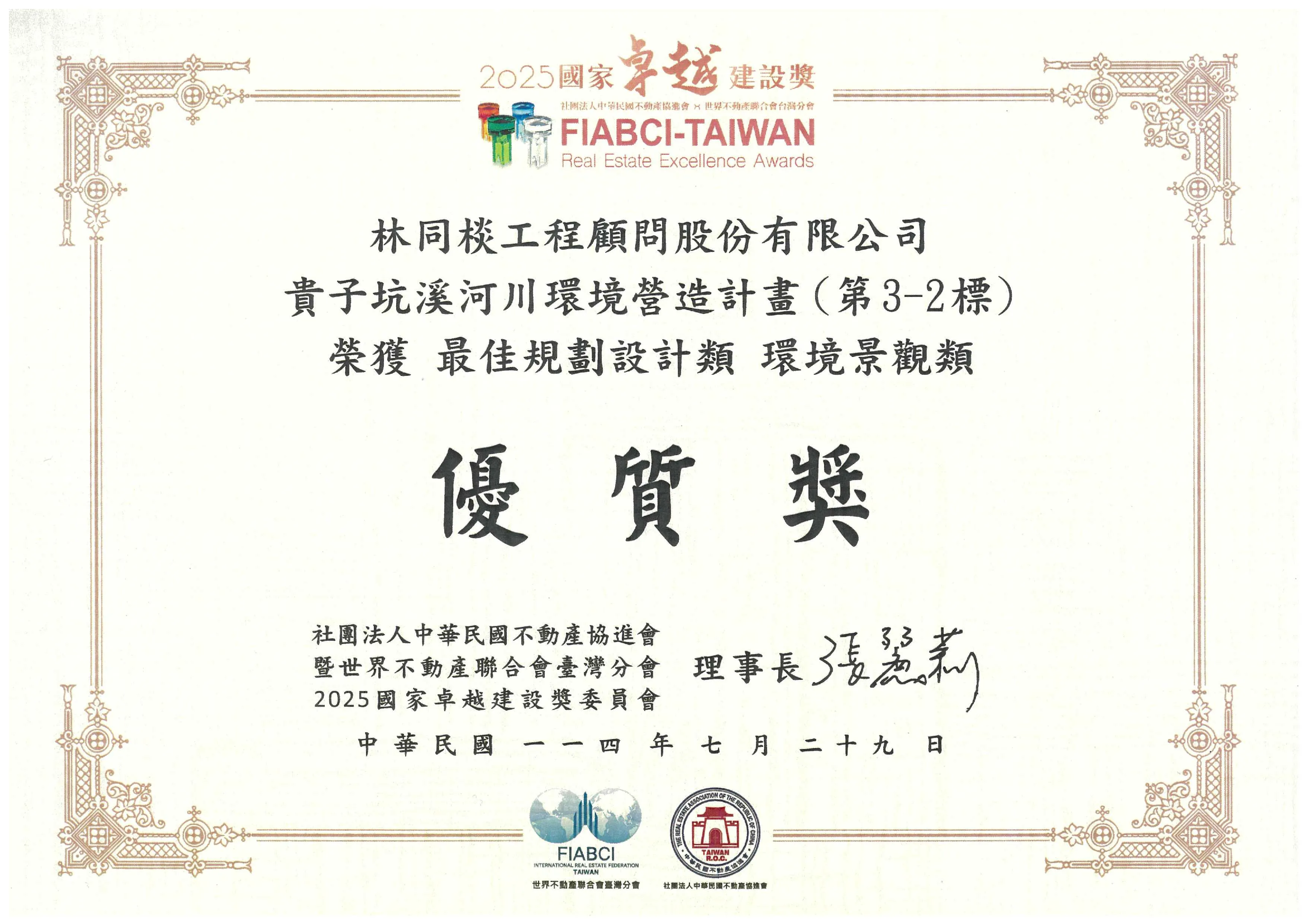 114年度國家卓越建設獎-最佳規劃設計類環境景觀類-優質獎