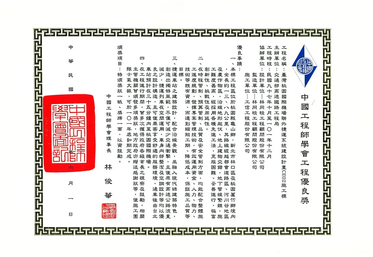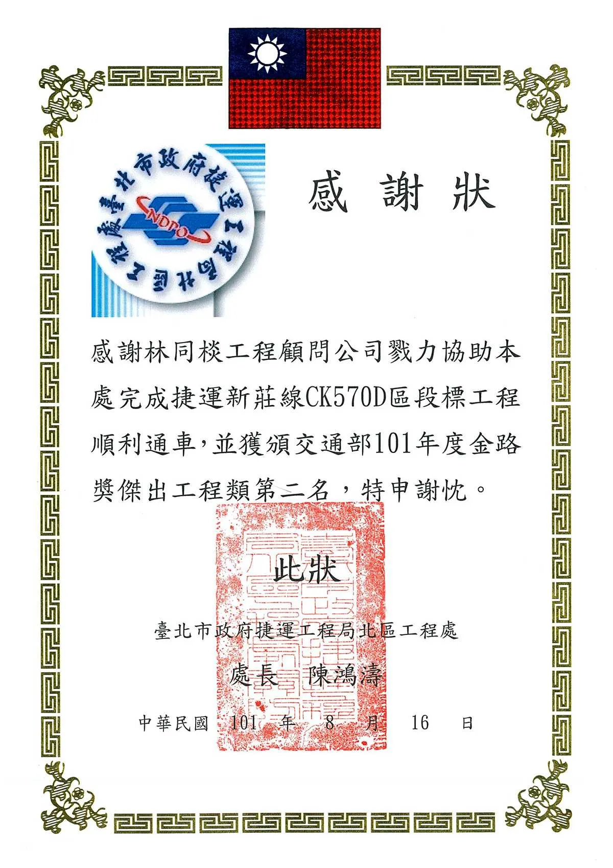 101年度臺鐵新竹內灣支線改善計畫工程績優廠商