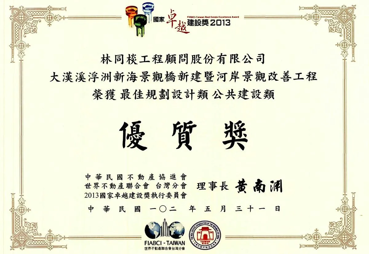 102年度國家卓越建設獎-最佳規劃設計類公共建設類-優質獎