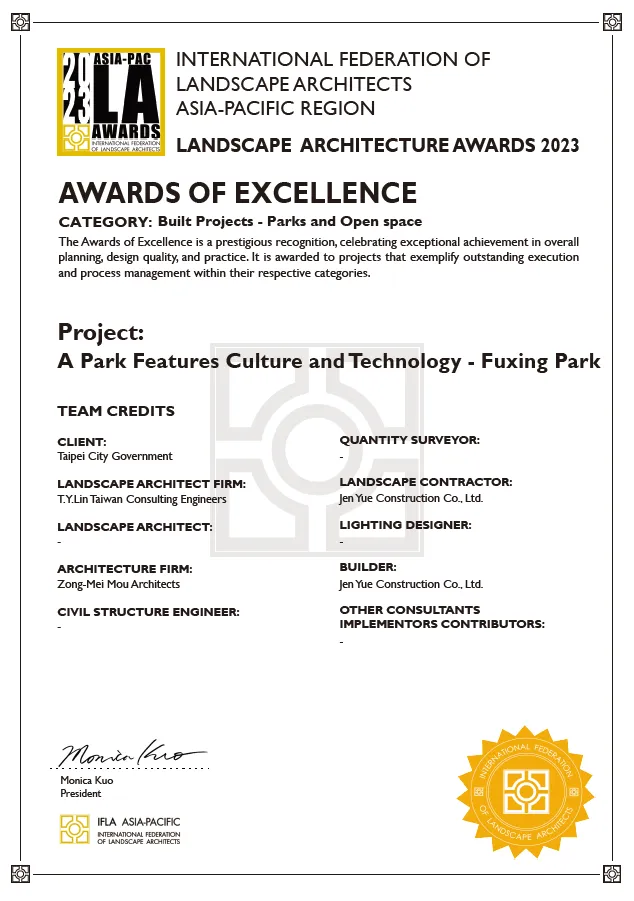112年度「IFLA AAPME Awards 2023」國際景觀大獎競賽卓越獎Awards of Excellence