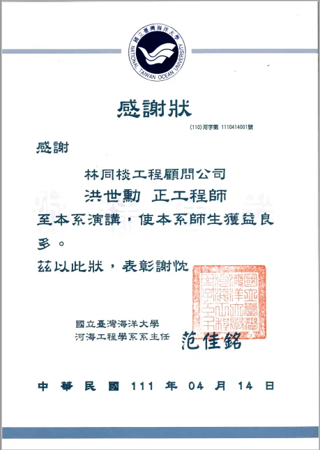 資深工程師洪世勳於2022/4/14受海洋大學河海工程系許世孟教授邀請進行專題分享,講題:「資訊在大地工程應用案例介紹」