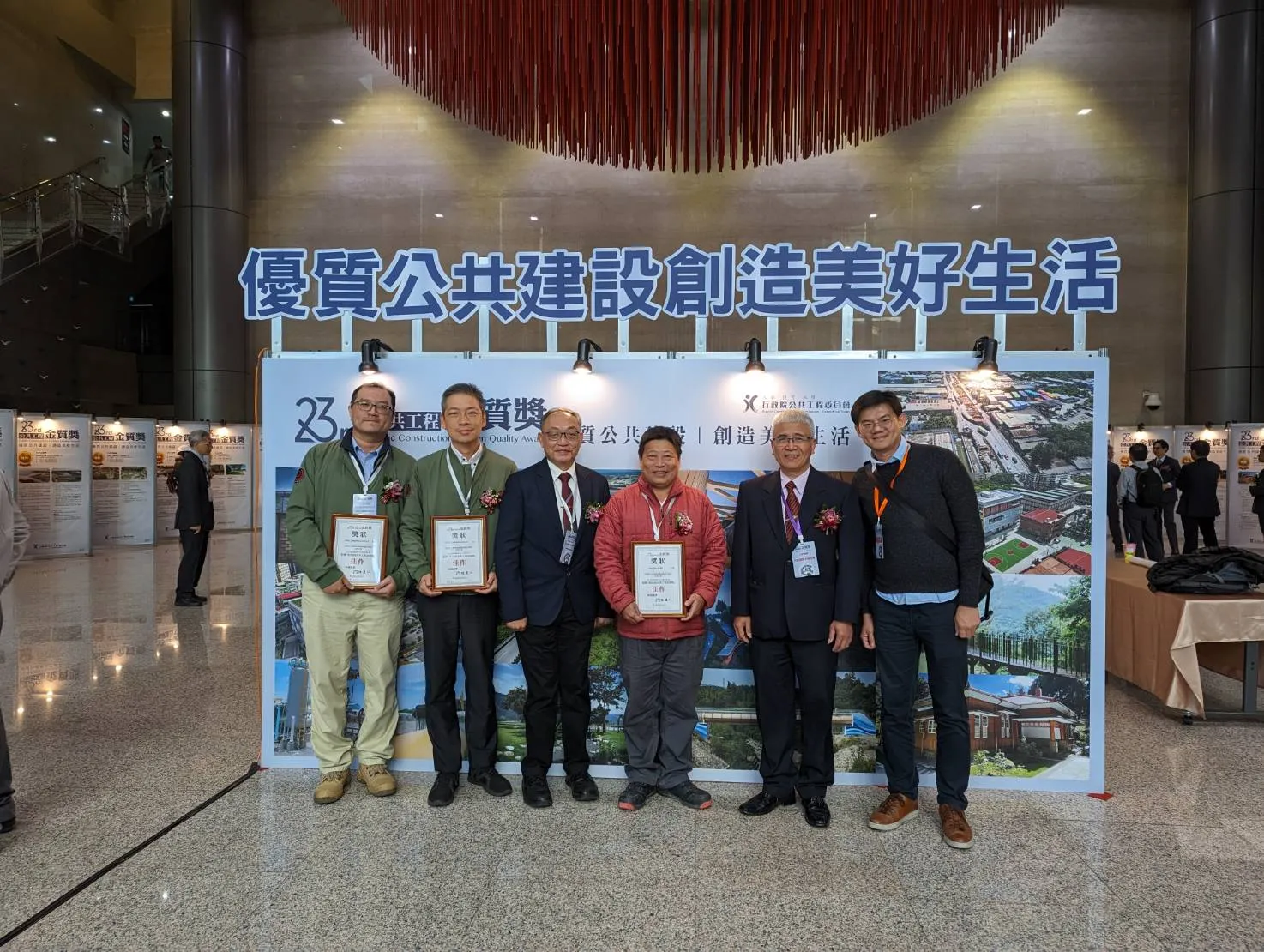 第23屆公共工程金質獎於12月26日舉行頒獎典禮。本公司設計監造之「新港社大道及南科聯絡道路口轉向改善工程」獲頒土木工程類佳作,「碧潭堰改善暨周邊環境營造」獲頒水利工程類佳作。